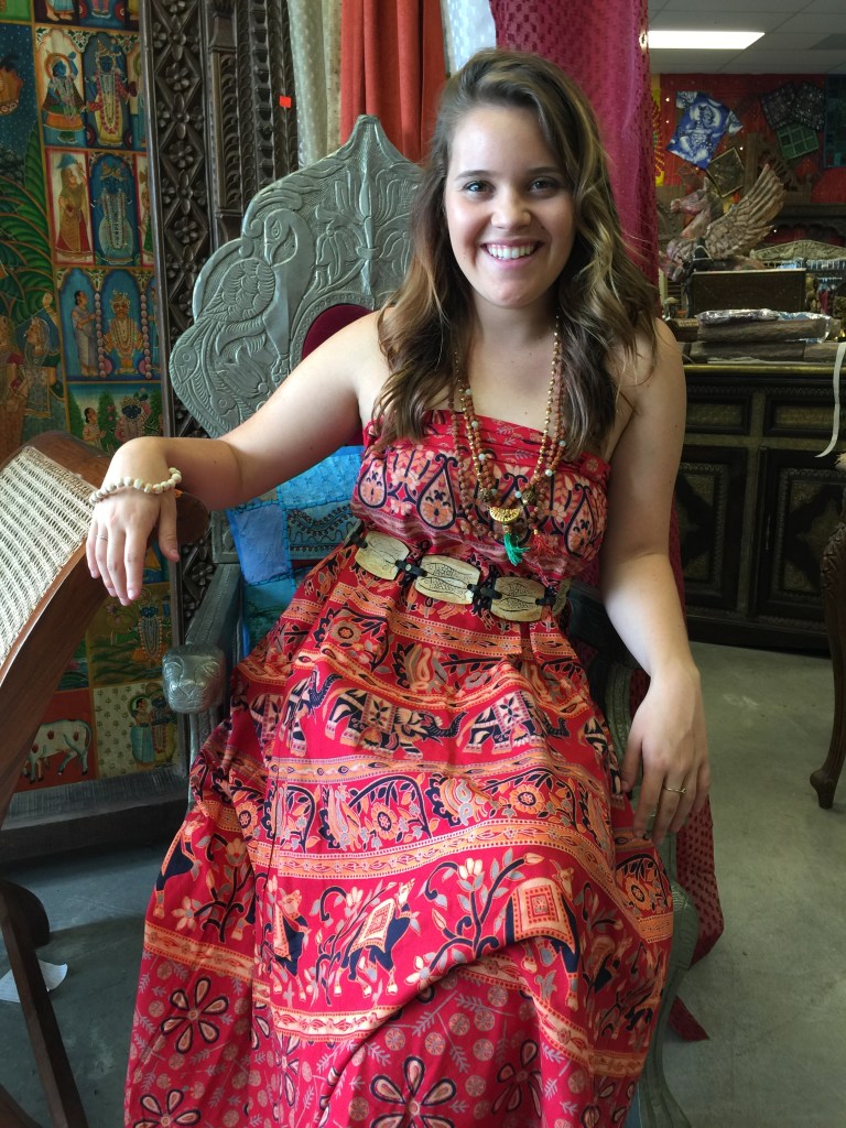 Indian Tunics and anarkali dresses in botanical prints, knee length, cinched at the waist with a scarf or belt. Short hip length ethnic embroidered tunics with denim skirts and a colorful dupatta. Loose sari pants worn high waist or double fold to show the belly button, match with yoga tanks. Stack the mala beads around your wrist and you are super desi chic.