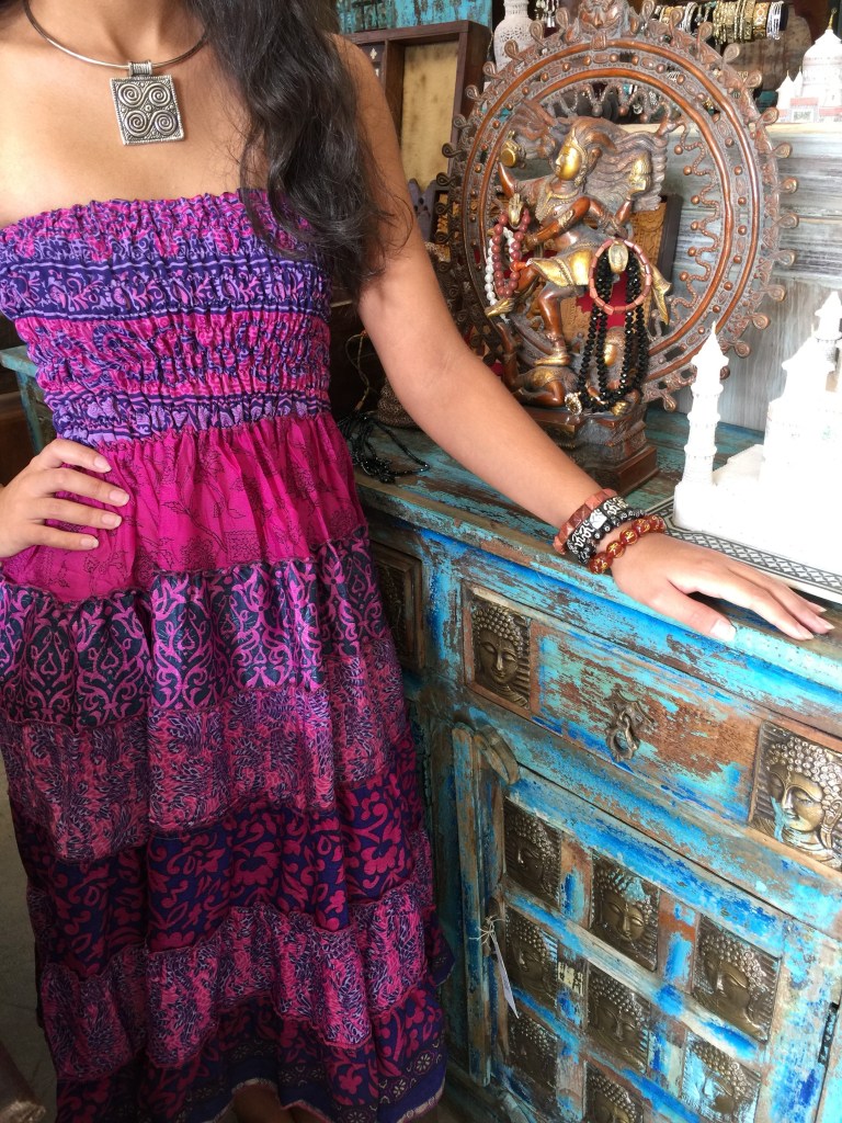 Bold self-expression, free spirit, gypsy wanderlust, no boundaries, fashion that sings along with the soul. Coachella fashion has become a household name inspiring celebrities like Vanessa Hudgens and Katy Perry. I go every year, like many gals and gupys, and plan my Coachella outfits ahead of time on Pinterest. Obsessing over the flamboyant colorful gypsy style I am inspired by the boho style that is unique and effortlessly chic. My favorite looks for some Coachella style inspiration are the boho dresses made from recycled saris, gorgeous printed fabric and soft silken to touch. Strapless with a ruched back they fit my curves perfectly. I have a full line up of the hi low skirts as well which I wear with tubetops, gladiator boots and chunky bracelets.