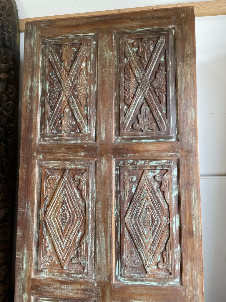 Older architectural doors feature dense teak woods, authentic antique materials such as iron and brass, and vintage patinas create a new energy field of design that is reminiscent of Haveli or Mediterranean architecture. Use these reclaimed wood doors as interior doors, barn doors or bedroom doors.
