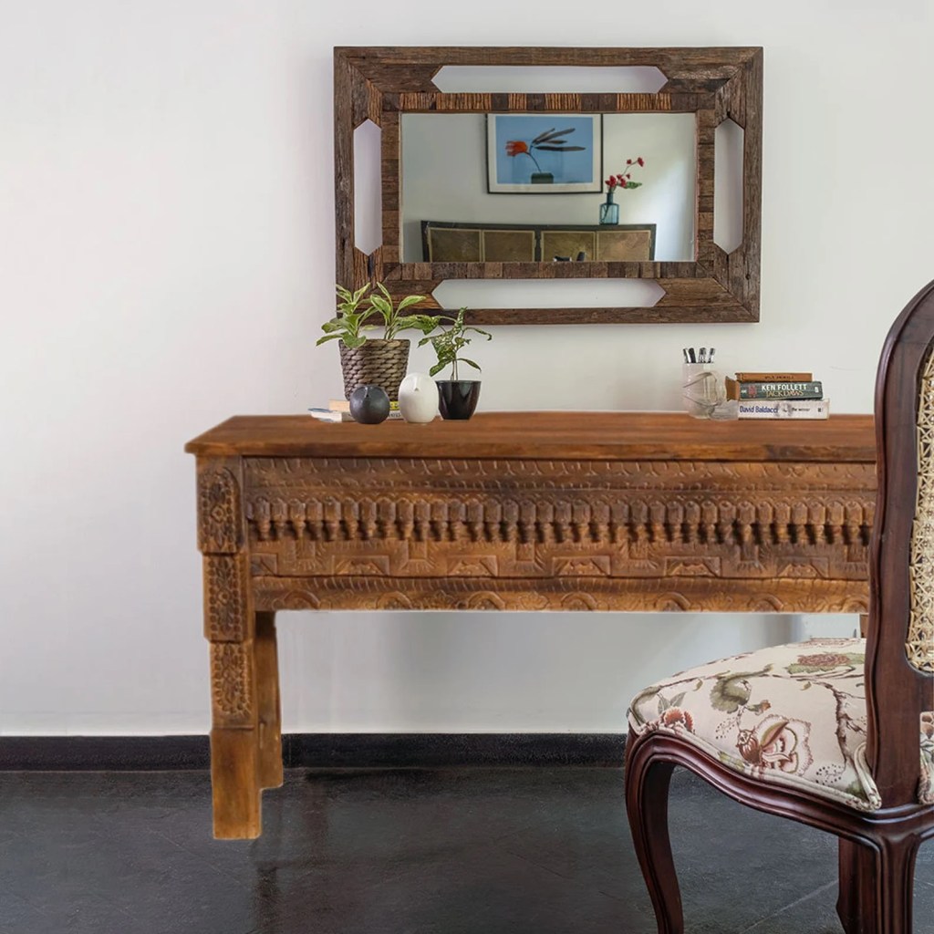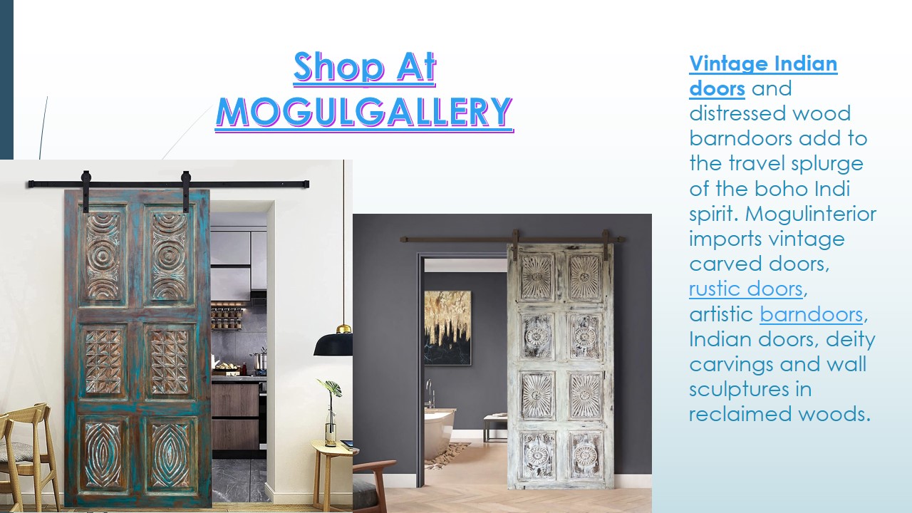 Bring British Colonial style to your home with unique handcrafted furniture like the teak carved armoires, trunk tables, old door tables & dark teak doors used as headboards. Combining refined British pieces with exotic materials and natural textures, this look evokes the spirit of the “age of discovery”.The accessories used to accent the decor are from local Indian artisans. For example, the addition of jharokha mirrors and ornately carved headboards are typical of the Anglo-Indian style. Botanical motifs & paisleys, with monochromatic wood armoires and colorful Indian doors give interiors a new twist.