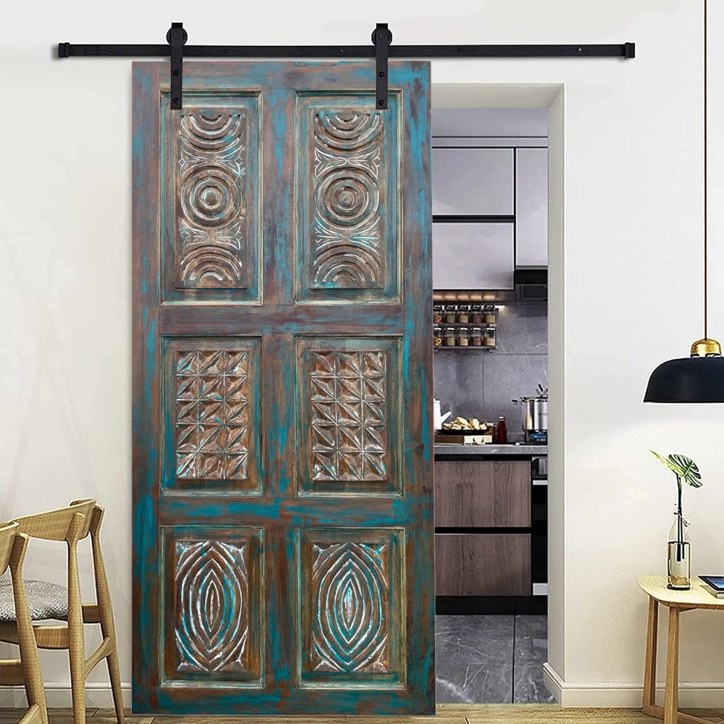 If your preference leans towards the tranquility of white clouds or soft misty gray on the walls, infuse the room with your favorite blues through vintage blue washed credenzas. Play with various blue shades in coordinating patterns, weaving depth and intricate details throughout the room. Drawing inspiration from nature, interior designers often suggest pairing blues with complementary tones. Sunshine yellow, with its warm vibrancy, becomes an excellent accent color, harmonizing effortlessly with the blues. Similarly, sandy beige and seaweed green carved barndoors contribute to a harmonious coastal palette, mirroring the natural beauty of the shore.
