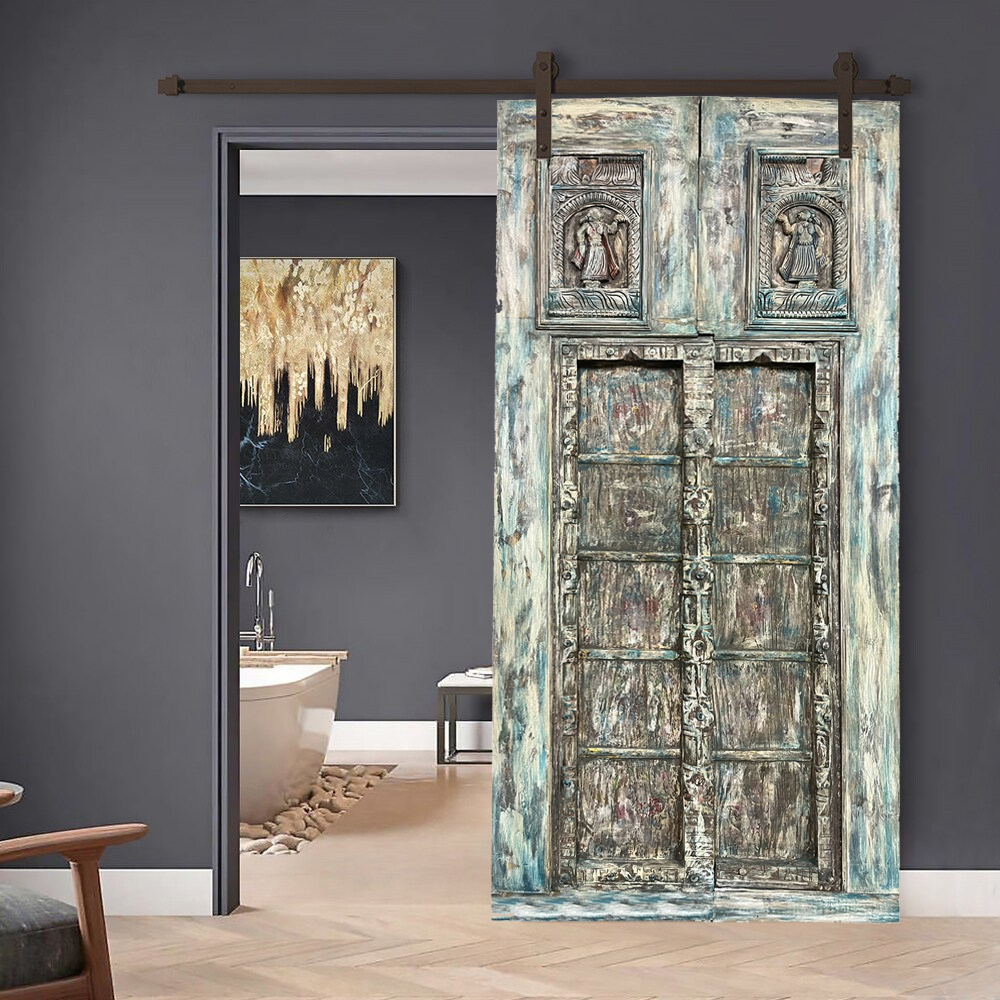Energy Efficiency: rustic indian Barn doors can contribute to energy efficiency by acting as an insulating barrier. They help regulate temperature within your home, reducing energy consumption and potentially lowering utility bills. By closing off spaces, barn doors can help contain heat or air conditioning within specific areas, improving overall energy efficiency.