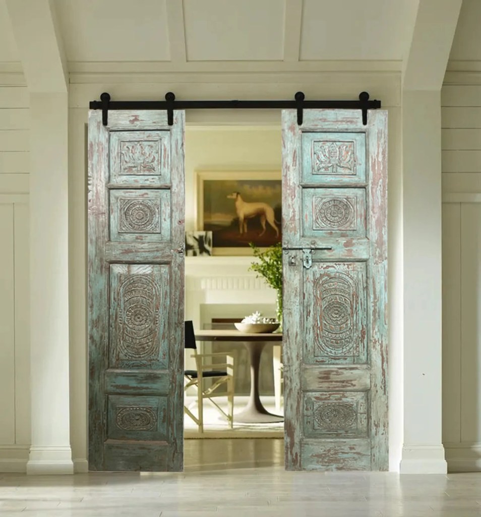 Rustic reclaimed woods used in the carved barn doors that are handcarved with florals and twines bring in the elements of the forest and are so beautifully earthy as well. They can be used as sliding barn doors for your mudroom. The artistic door panels bring in the earth element and have clean lines that work well with modern interiors.