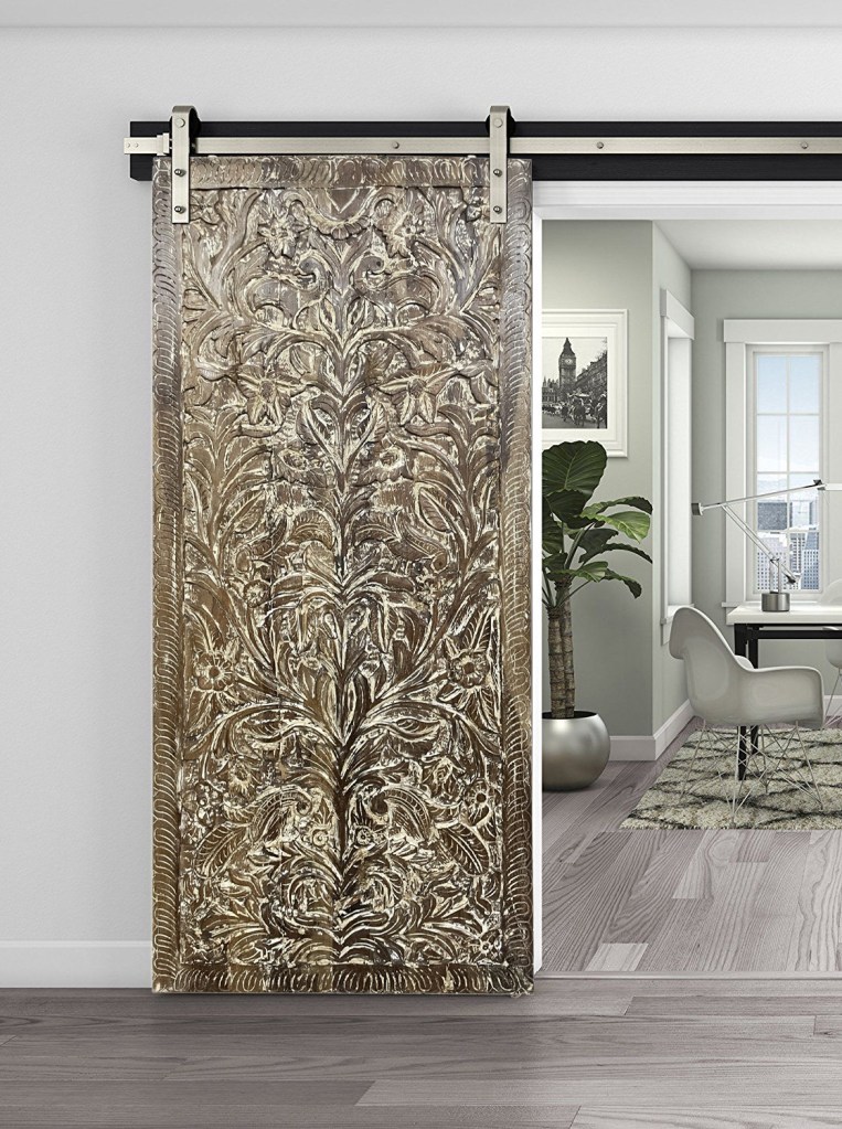 Step into a world where craftsmanship meets spirituality with our Custom Barn Door Panel Eternal Harmony. This stunning piece features the Vintage Dancing Krishna Wall Art, meticulously hand-carved to capture the essence of Krishna’s joyful dance and the serene presence of the sacred cow. With its intricate detailing and vintage charm, this carved barn door panel is more than just a functional element—it’s a statement piece that transcends time and space. shop Rustic Carved door at etsy Mogulgallery