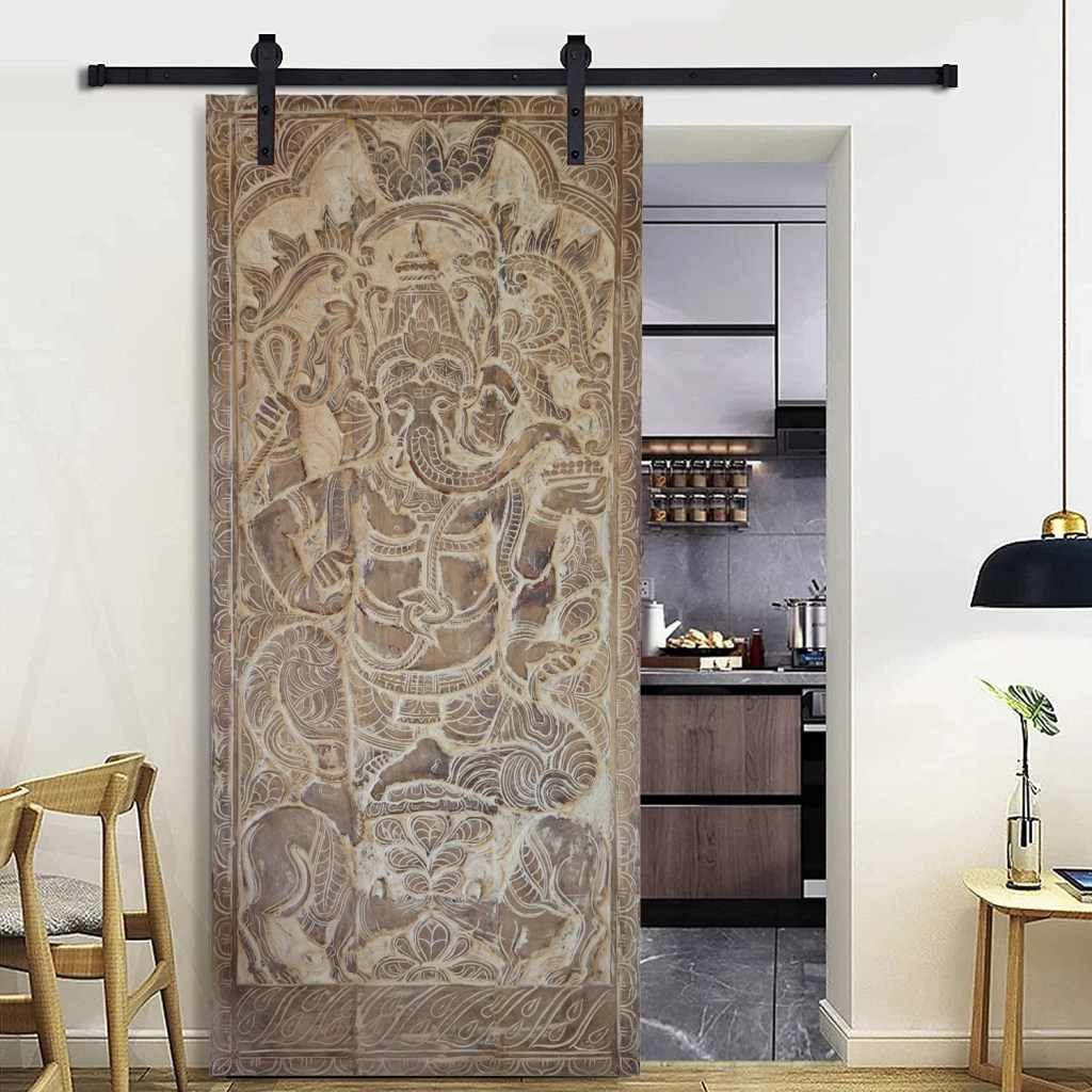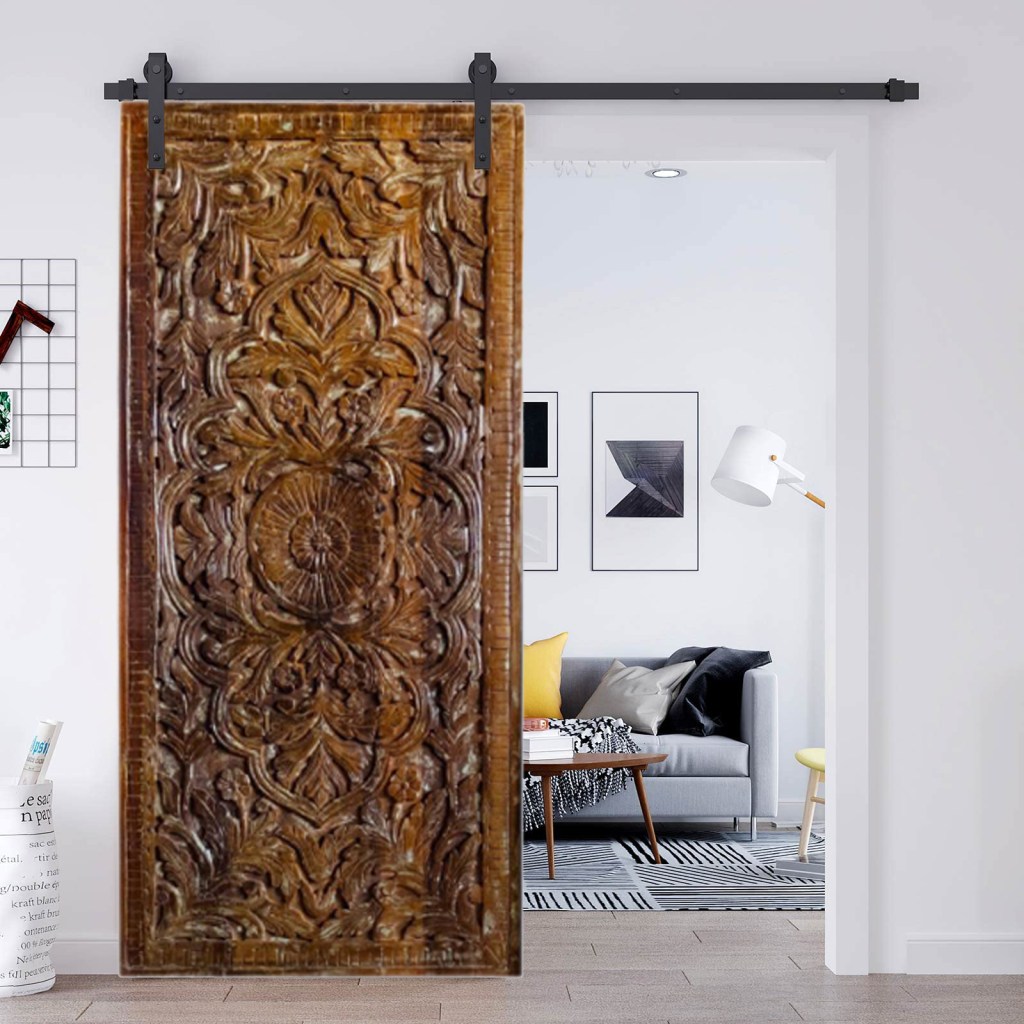 Open floor plans in the modern farmhouses of urban Massachusetts, or rural Virginia, the rustic barn doors make the house spacious and less segmented. You can use these doors as privacy shutters as well if you have a lots of sliders as is seen most waterfront properties, which you like to keep open in the daytime and don’t care to use drapes. The artisan carved barn doors can slide over these windows at night and open to the sides during the day giving your room and eclectic artistic temperament.