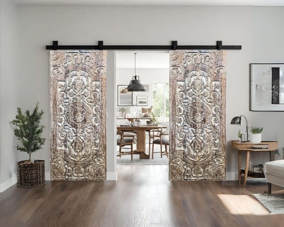 Warm and collected, modern rustic farmhouses are filled with casual, lived-in village charm. Designers take elements from the old world architecture, mix with practical and modern fittings thereby making a statement piece. The modern farmhouse aesthetic takes the front porch and makes it whimsical with an elaborately handcarved swing with flowers and peacock detailing. Whether a carved arch spans the entire front porch of the house, or has one that is small and enclosed, a front porch is a beautiful farmhouse touch.