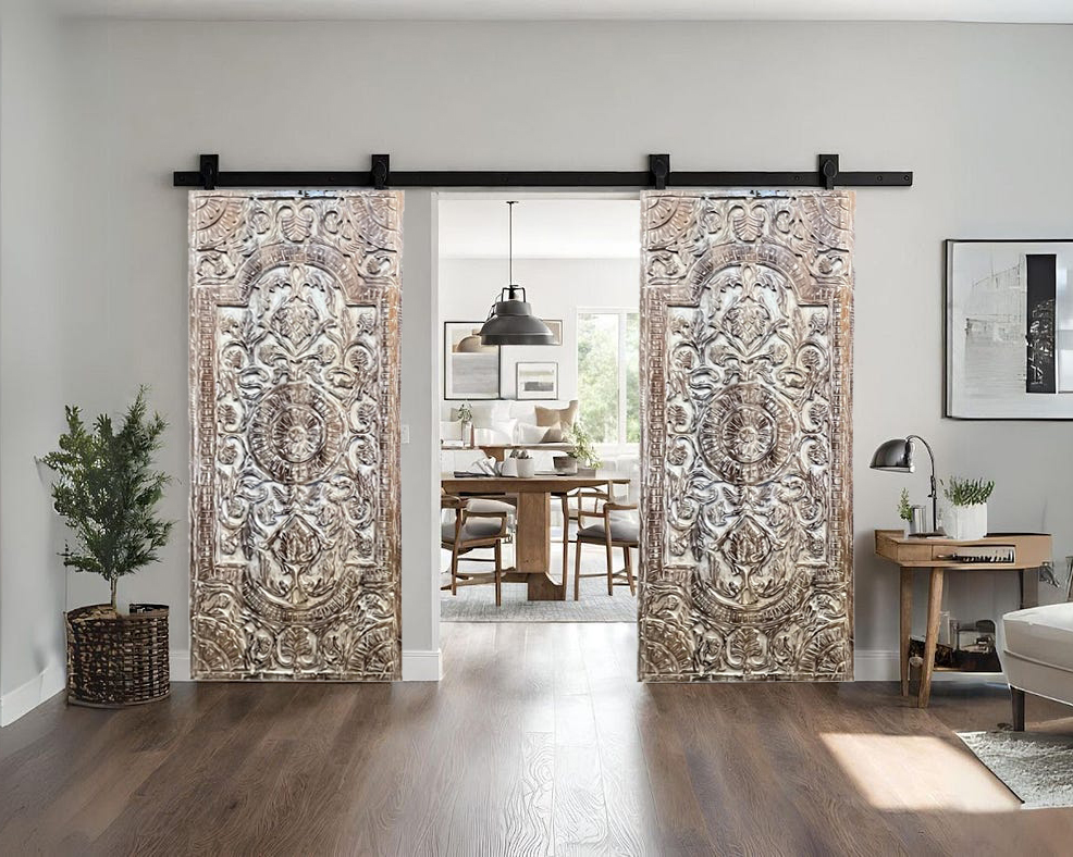 - Reclaimed Wood Carved Barn Door: Perfect for a rustic modern look, this door combines the beauty of reclaimed wood with intricate carvings for a unique statement piece.