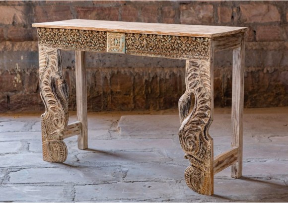 Barn doors made from old Indian doors studded with brass and iron connect the air element to the earth, thereby grounding us and keeping our emotional state in balance, giving us courage and strength to our core. Old door coffee tables, office desks and consoles made from old reclaimed natural woods and accented with iron nails and brass stars are designed in the old world method that places us in the reality of nature and its balancing techniques and everchanging energies.
