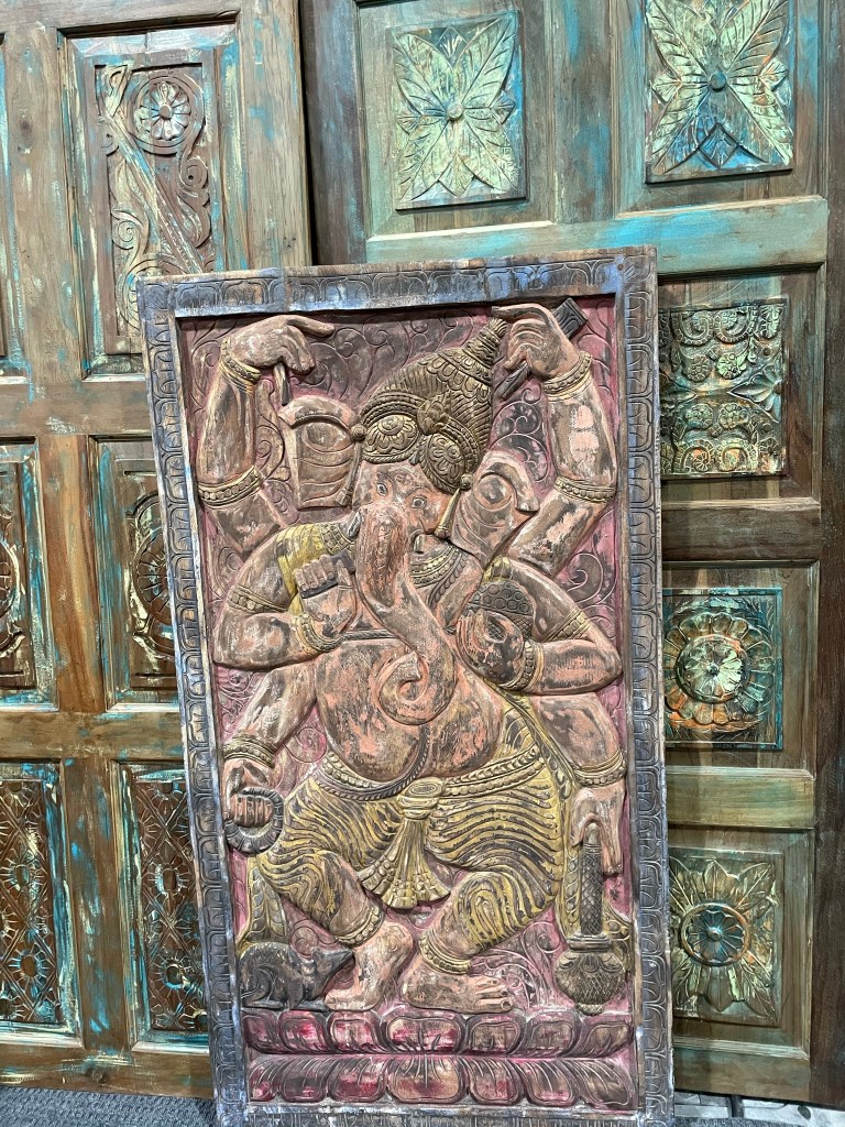 Consigned Vintage Ganesha Wall Sculpture, Indian Art, Custom Carved Barn Doorby Mogul Interior