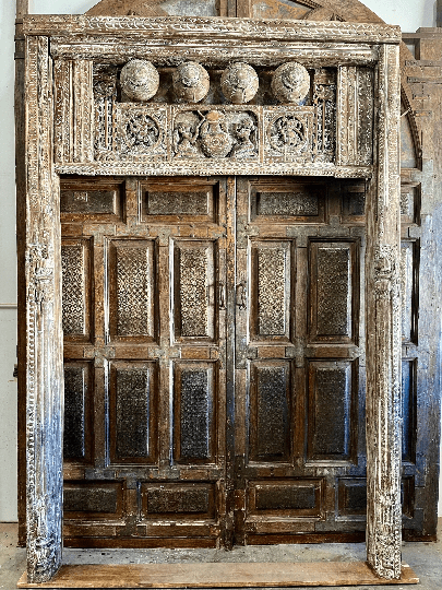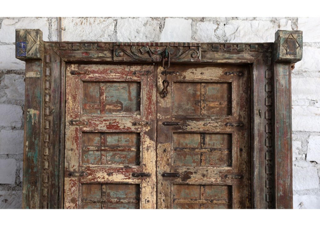 An antique door in dark teak and gorgeous carved detail is seen with climbing ivy and moss giving the soft warmth of aged wood and old bygone days. Sun soaked doors and the resplendent rustic architecture brings in the classic ambiance of Tuscany. Unpretentious colors and natural fabrics like handloom cotton bed throws and silk curtains accent the flavor. Bold designs and patterns complement the design, be it modern contemporary or traditional style.