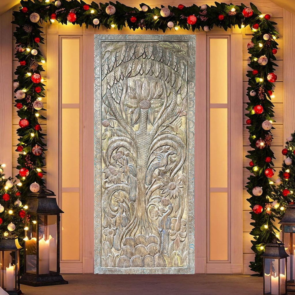 - Boho Tree of Life Carved Door Panel: Vibrant and artistic, this colorful barn door brings a bohemian touch to your space.