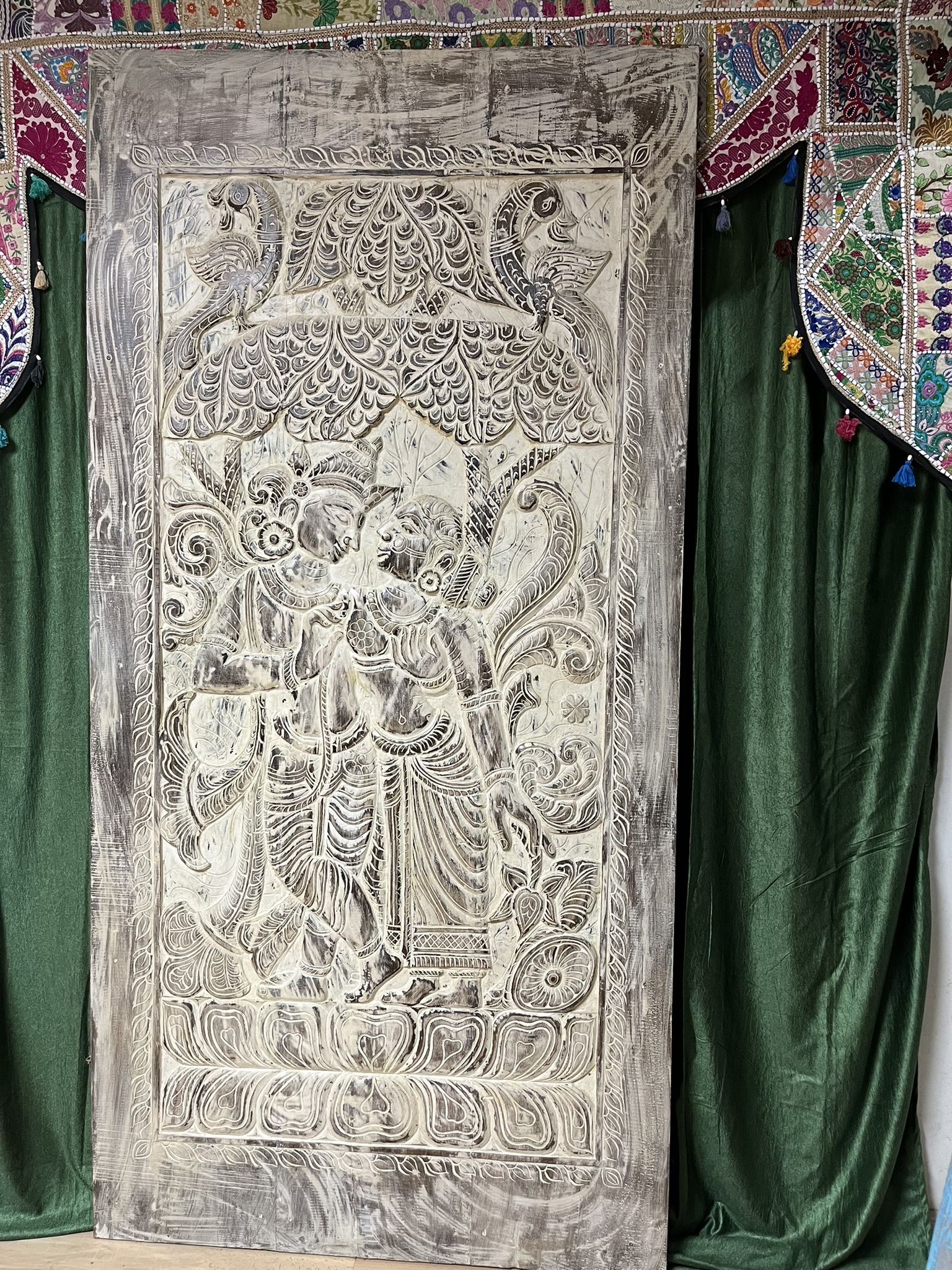 Another standout feature is the Antique Indian Chakra Carved Teak Double Doors with a stunning ochre patina that adds depth and character to any space. These remarkable vintage doors, once used as grand exteriors in a historical Indian residence, now serve as statement pieces in our home, drawing the eye of every visitor. Their intricate carvings, meticulously crafted by skilled artisans, tell a story of craftsmanship from a bygone era, while their vibrant finish instantly transports you to a time of handcrafted elegance and cultural richness. Each antique carved door holds a unique charm, showcasing the beauty of repurposed materials and serving as a conversation starter, reminding us of the artistry involved in their creation and the history they embody. These doors not only enhance the aesthetic appeal of our living space but also serve as a symbol of timeless design that bridges the past with the present.