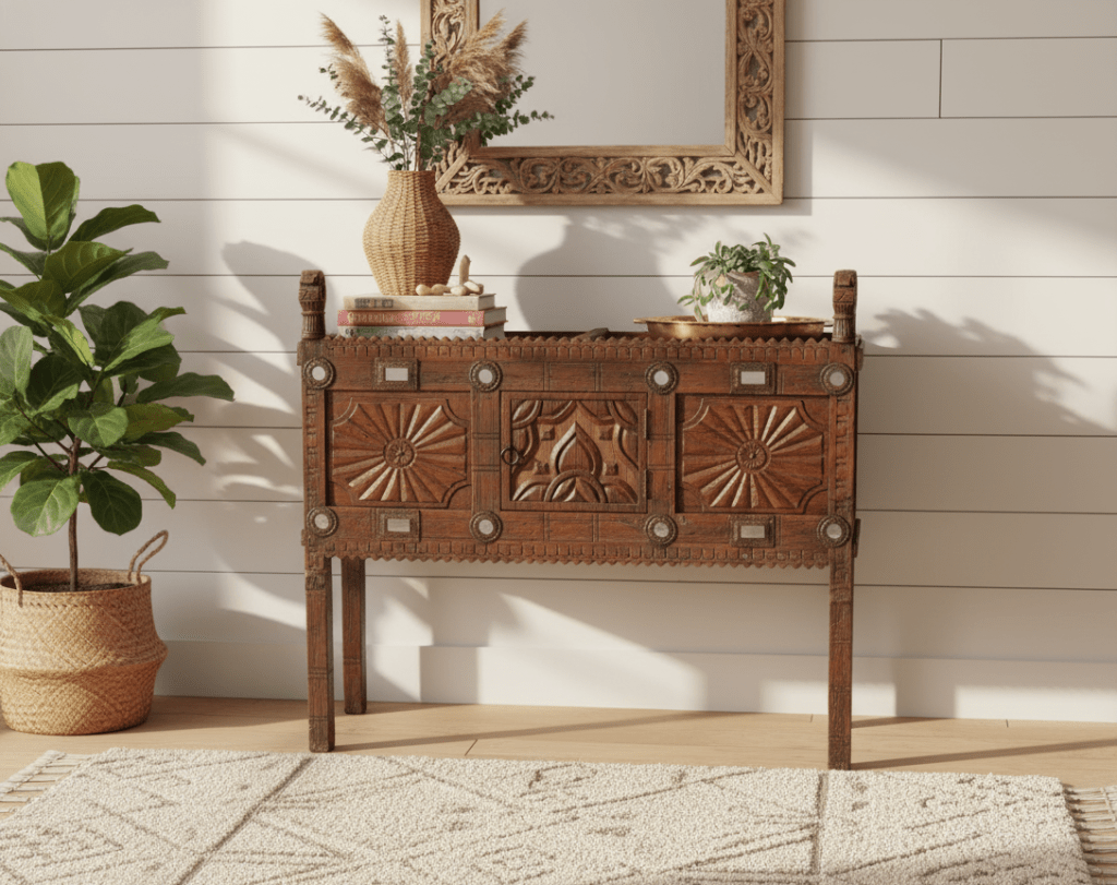 Indulge in the enchanting world of Eclectic Indian Antiques & Furniture, where rich heritage, vibrant culture, and timeless craftsmanship intertwine. From intricately carved wooden armoire to vibrant textiles, this diverse collection offers a unique blend of history, art, and functionality. Eclectic Indian Antiques & Furniture showcases the embodiment of India’s rich cultural tapestry. Find Us at Etsy DoorsbyMJ