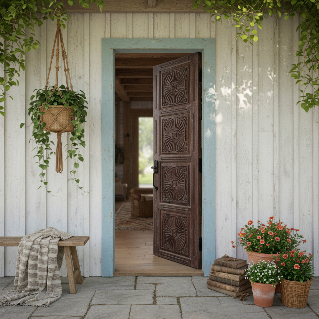 This California bungalow redefines laid-back living through a design lens best described as “Prairie Cool”—an aesthetic that balances earthy restraint with fearless pattern play. Rooted in natural materials and sunbaked hues, the home channels relaxed desert vibes while embracing a playful, highly personal approach to interiors. The result is a one-of-a-kind residence that feels grounded, expressive, and effortlessly modern. Anchoring the space are rustic barn doors and vintage carved doors, crafted from reclaimed wood and rich with patina. These statement doors—from sliding barn doors to rustic farmhouse doors—add texture, history, and sculptural presence. A striking Tree of Life door becomes functional art, blending symbolism with craftsmanship. Each rustic door enhances the Prairie Cool aesthetic, infusing warmth, authenticity, and soulful character into the home’s relaxed, modern flow. Shop At Etsy DoorByMJ