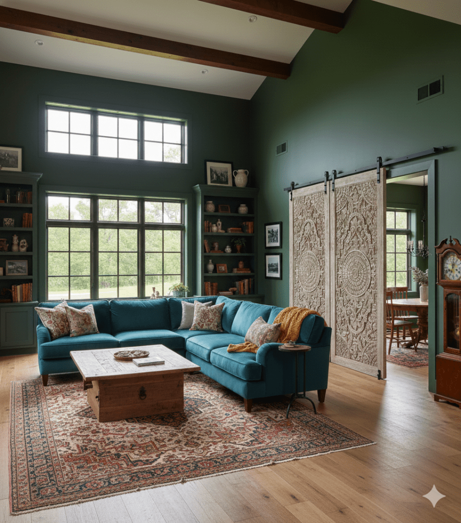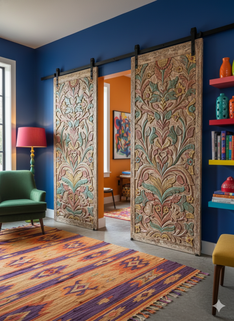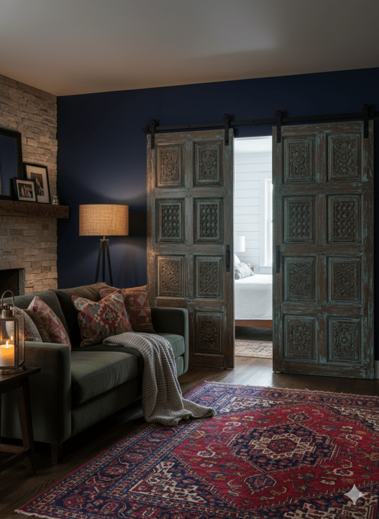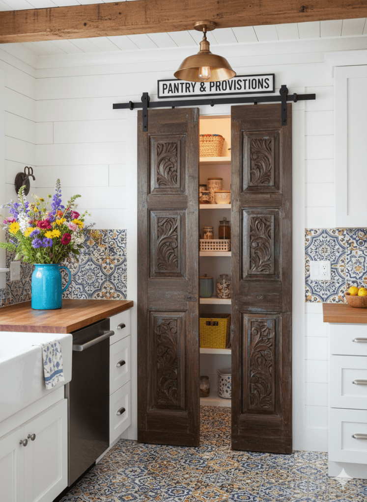 One iconic feature of farmhouse design is the use of vintage barn doors, which add character and authenticity to any space they adorn. Carved vintage barn doors, with their weathered textures and intricate detailing, serve as focal points that tell stories of bygone eras and rural life. These doors can be repurposed as room dividers, closet doors, or even decorative accents, adding a touch of nostalgia and charm to your home.