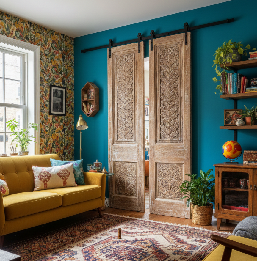Casita Chica — a name that means “little house” — is proving that small spaces can carry the grandest stories. The secret? Letting the walls, doors, and architectural details do the talking, sourced entirely from the extraordinary world of Mogul Interior’s hand-carved wood sculptures and statement doors. Shop At Etsy DoorsByMJ