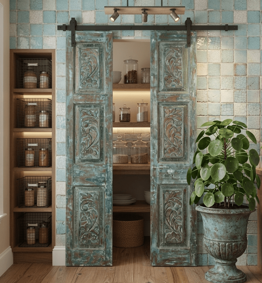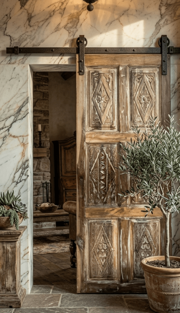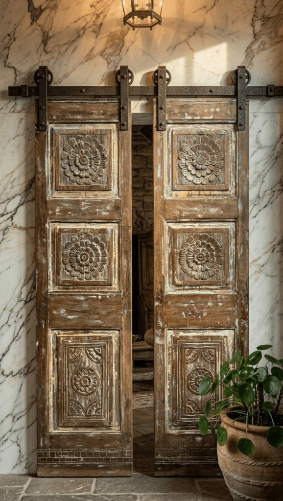 - Vintage Carved Wooden Barn Doors – Rustic Farmhouse Sliding Door Design