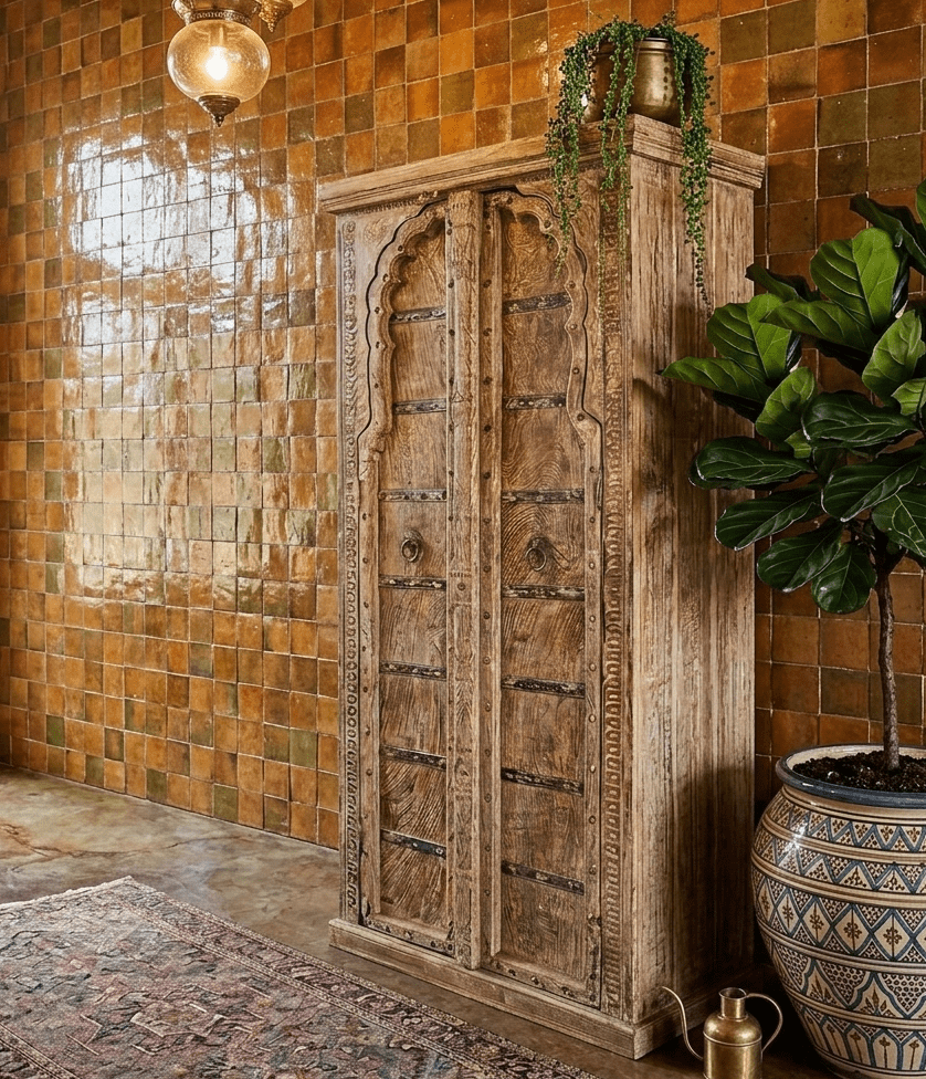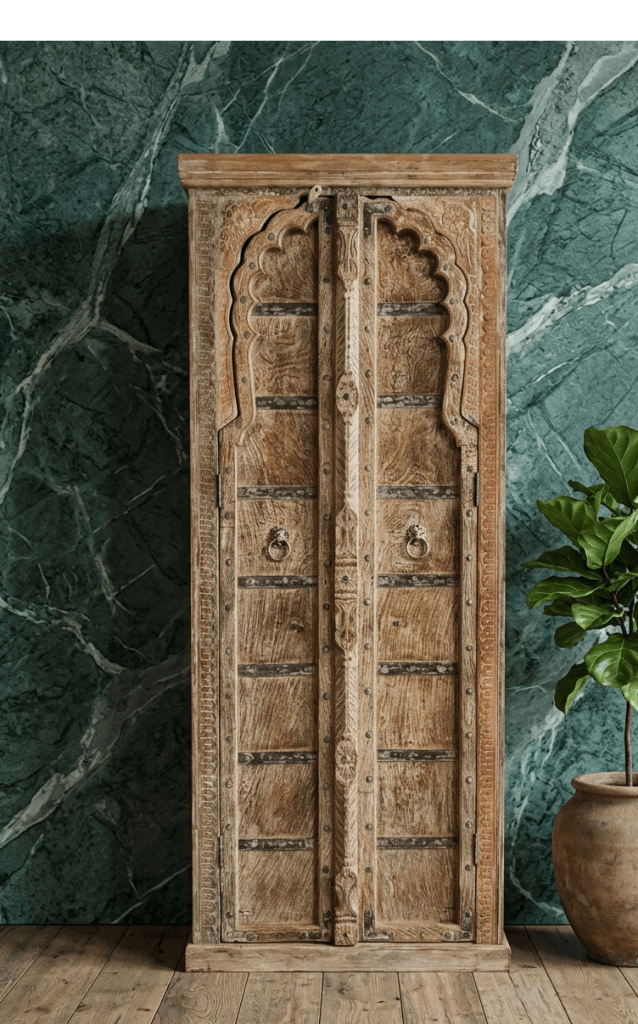 I have a theory about antique Indian armoires. Every room that has one looks finished. Every room that doesn’t is still looking. I have been sourcing and placing these pieces for years — in bedrooms, in entryways, in living rooms that needed an anchor and didn’t know it yet — and the reaction is always the same. Clients stand in front of them and go quiet for a moment. Not because they are trying to decide if they like it. Because they already know. Shop At Etsy DoorsbyMJ