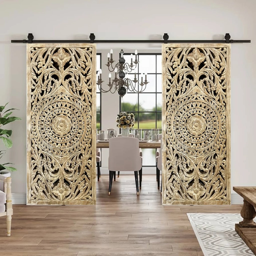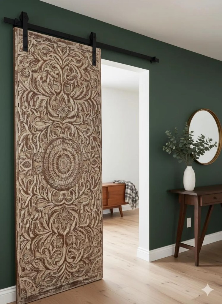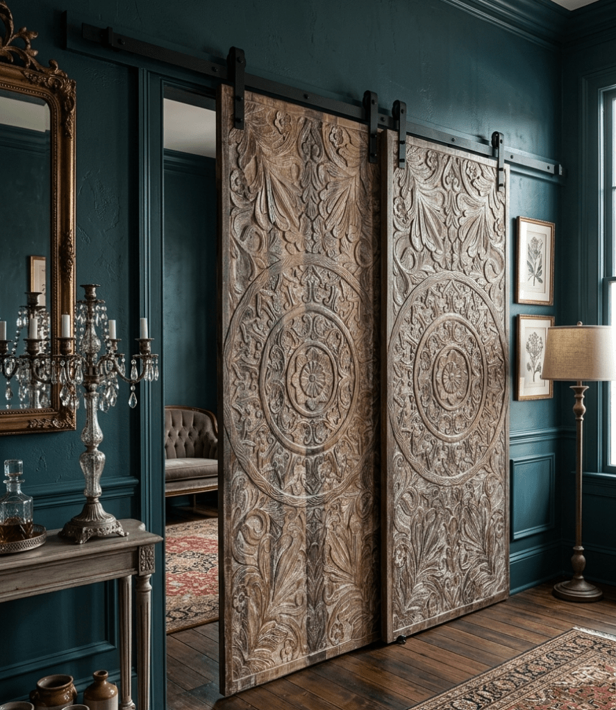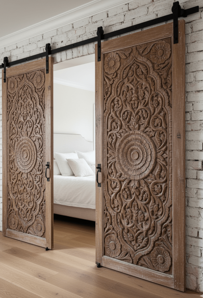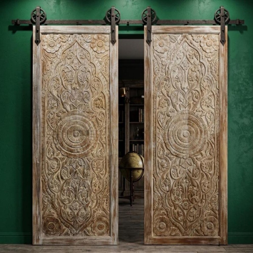 - Vintage Carved Wooden Barn Doors – Rustic Farmhouse Sliding Door Design