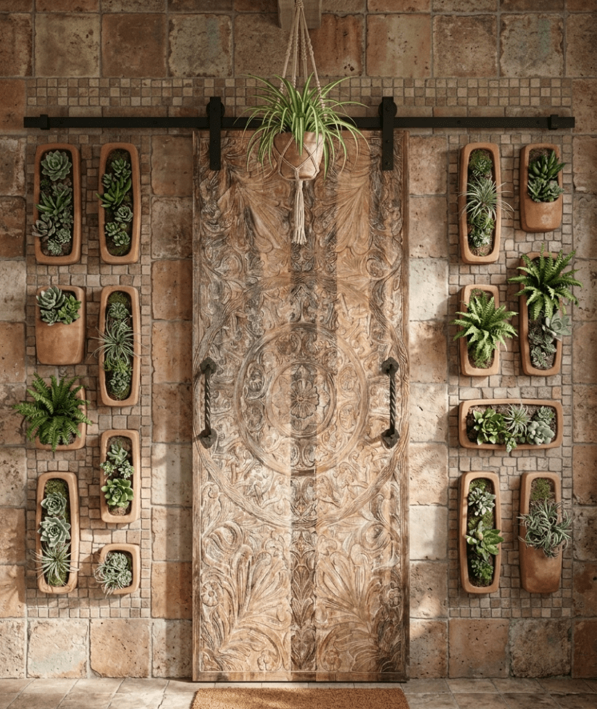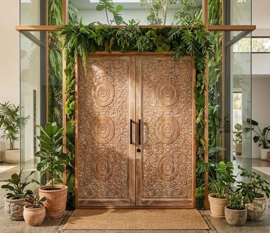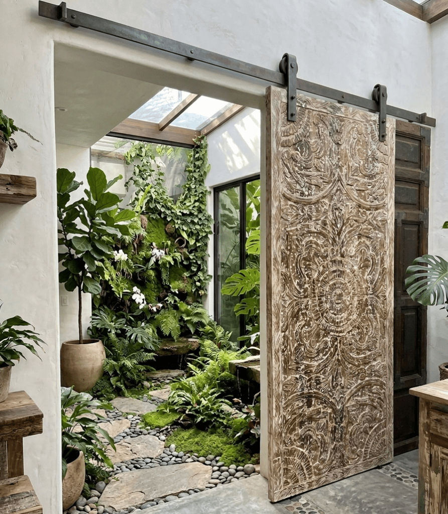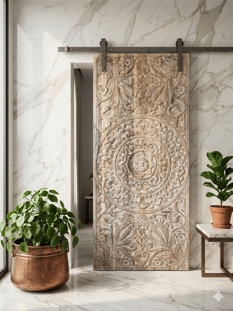 - Vintage Carved Wooden Barn Doors – Rustic Farmhouse Sliding Door Design