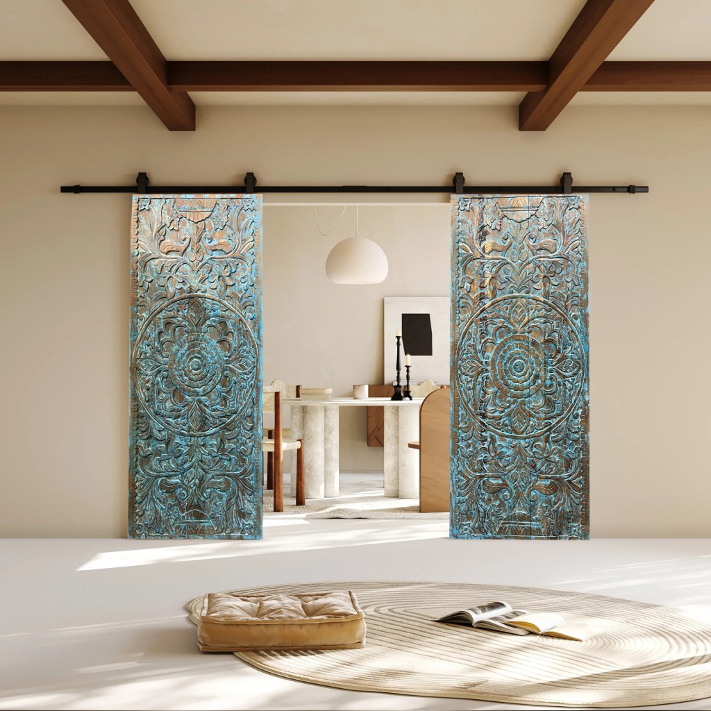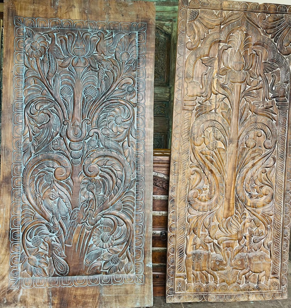 Indian carved doors, reclaimed from historic homes and temples, hold that grounding energy. Their timeworn wood, etched with floral and geometric patterns, becomes not just decor — but medicine for the spirit.