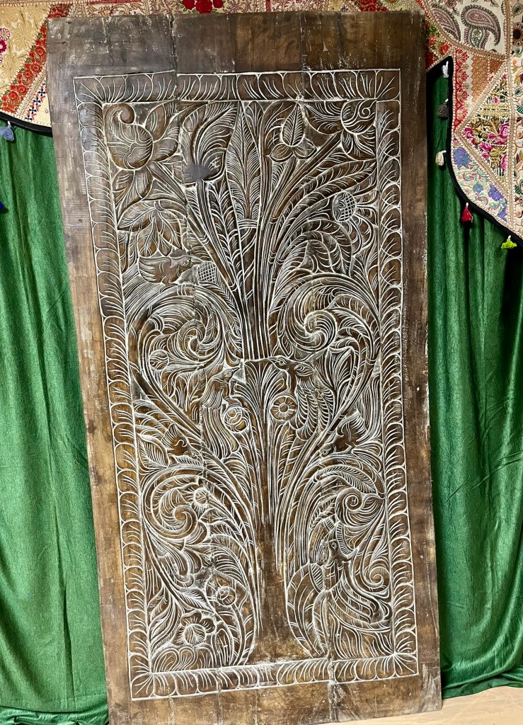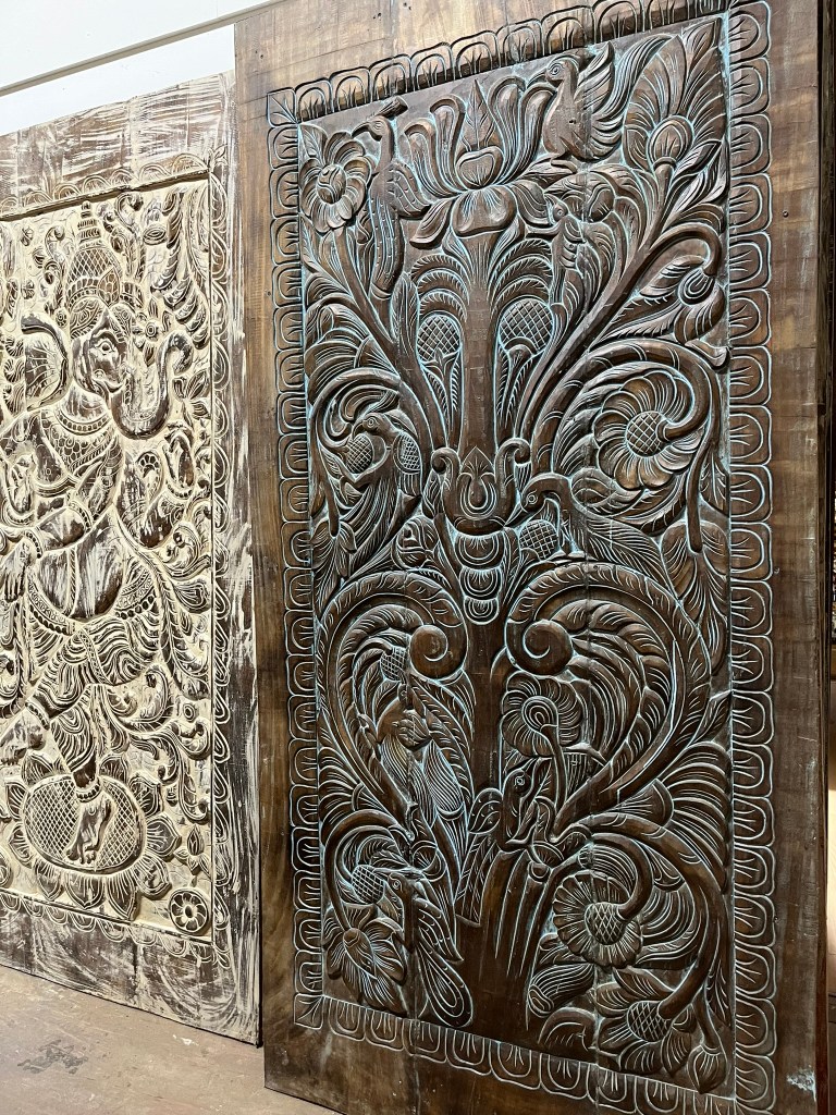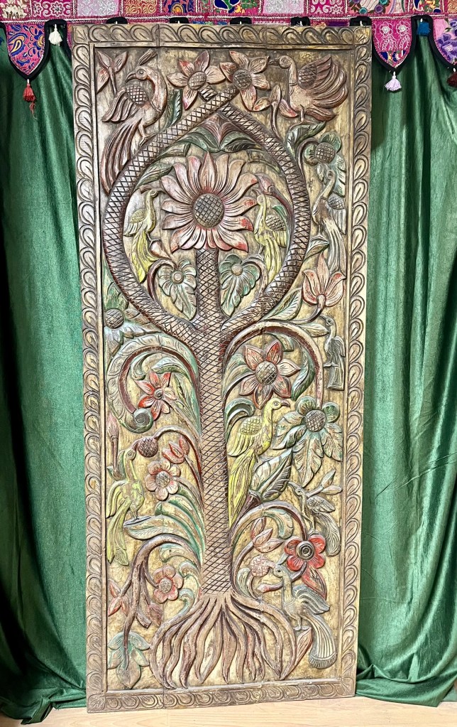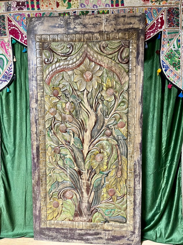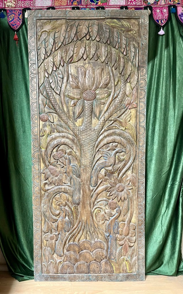 Imagine a breathtaking wall carved panel that captures the essence of a majestic tree. The tree’s trunk, hewn from rich hardwood, features a natural, organic texture that highlights the inherent grain and knots, offering character and depth. As the tree ascends, its branches are crafted with elegant, flowing curves that extend across the wall, their delicate lines inviting the eye to trace each turn and movement. The wall art is further enriched by strategically carved layers that create a sense of depth and shadow play, adding to the illusion of movement and life. This carved panel becomes more than just an adornment; it transforms your space into a living tableau of art, imbuing the room with warmth, nature’s beauty, and a touch of timeless elegance.