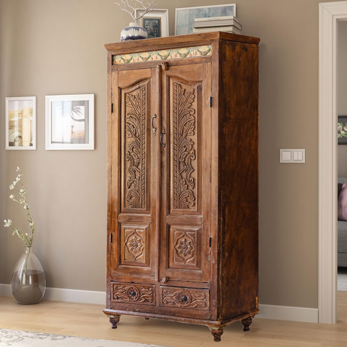 Antique Indian Carved Armoire, Modern Bohemian Interior