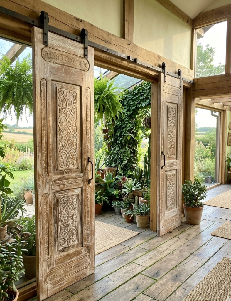 - Vintage Carved Wood Doors: A Study in Rustic Eclectic Sophistication