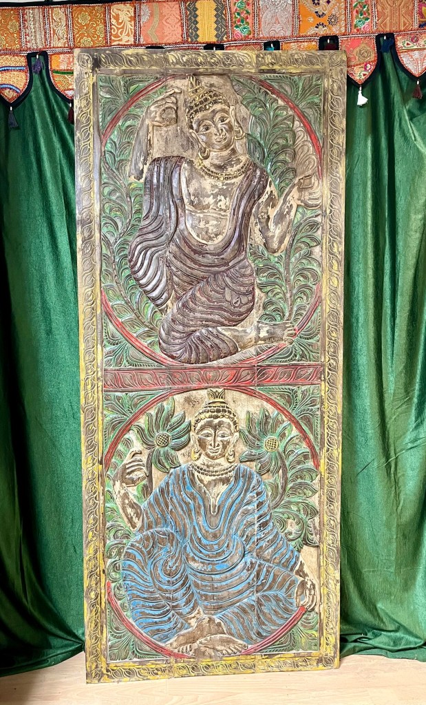 For a burst of color and spirituality, the Colorful Buddha Carved Door introduces vibrant hues and symbolic imagery into the home. This door not only serves as a practical entryway but also as a focal point that can inspire mindfulness and positivity within the space.