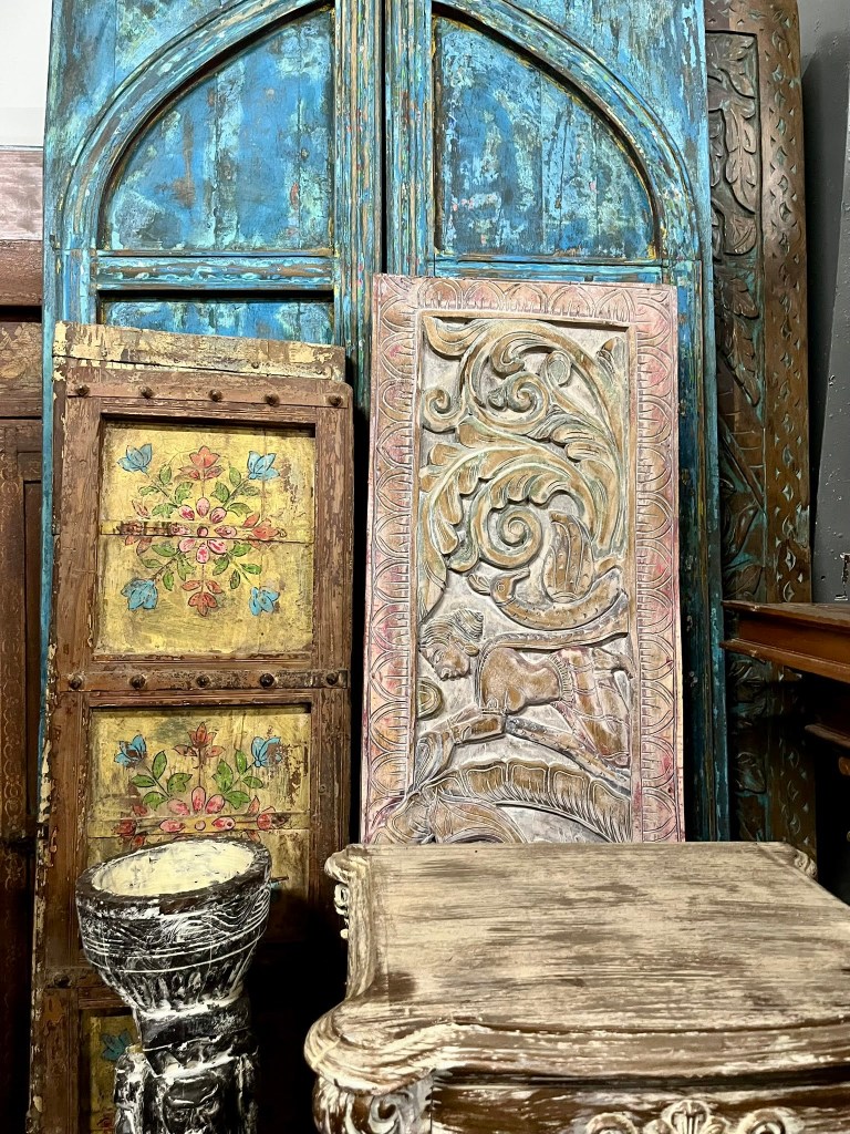 Antique Indian doors often feature intricate carvings, hand-forged hardware, and timeworn patinas that tell a story of their origins. Crafted by skilled artisans, these pieces showcase architectural styles from different eras and regions. From ornate ndian doors with traditional floral motifs to rustic barn doors from the countryside, each piece is a testament to its cultural and historical significance.