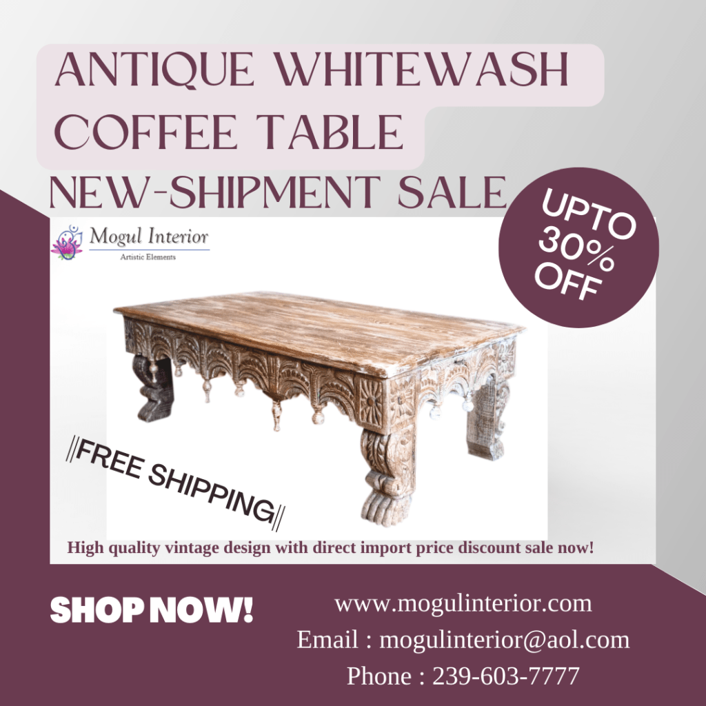 Antique Whitewash Coffee Table. Crafted with meticulous attention to