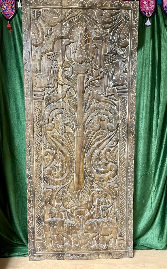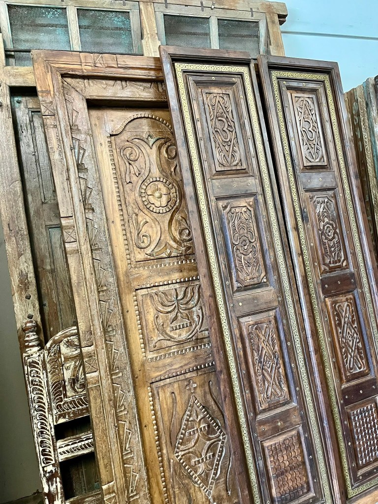 Symbolic Designs: The Tree of Life carved doors symbolize growth and interconnectedness, while lotus flower motifs represent purity and enlightenment. Rustic Charm created with reclaimed wood, these antique carved doors add an authentic farmhouse touch while embodying sustainability.