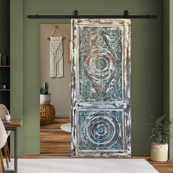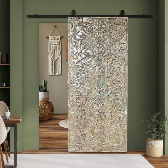 Imagine stepping into a space where rustic farmhouse aesthetics meet the bold, vibrant world of eclectic maximalism. At the heart of this captivating design fusion are Mogul Interior’s exquisite nature-carved doors, bringing a touch of organic beauty and spiritual symbolism to your home.