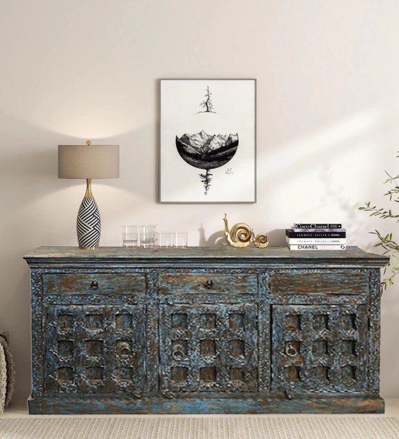 If your entry has the space, consider a vintage armoire. Not only does it offer practical storage for coats, bags, and shoes, but its handcrafted details add a sense of history and grandeur. A antique armoire instantly transforms an entryway into a charming, curated space, blending old-world craftsmanship with modern living.