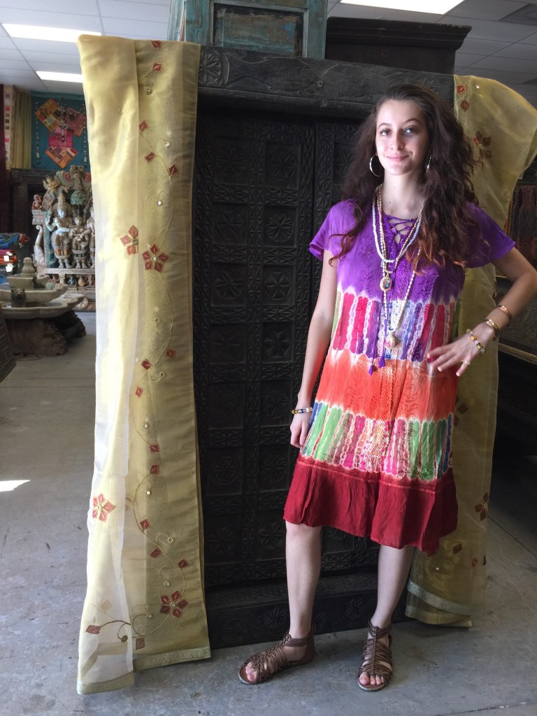 Bohemian women’s dresses made from recycled sari silk are designed to make a statement with forever-stylish silhouettes. The silk dresses can make you look and feel sexy, uniquely printed upcycled sari dresses make you stand out in a crowd. Vivid bohemian tribal and floral patterns are for the adventurously bold. Be dress obsessed or possess one versatile piece, the 2 in 1 silk skirt dress that flirts against your body while taking a romantic stroll on the beach.