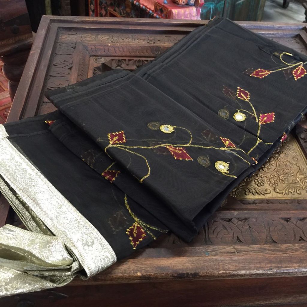 Pashmina blankets and throws with beaded zardozi, silk curtains, gold trimmed sheer drapes spin tales of the Sheikhs and harems. Create spellbinding decor with hand embroidered bed throws and matching toss pillows.