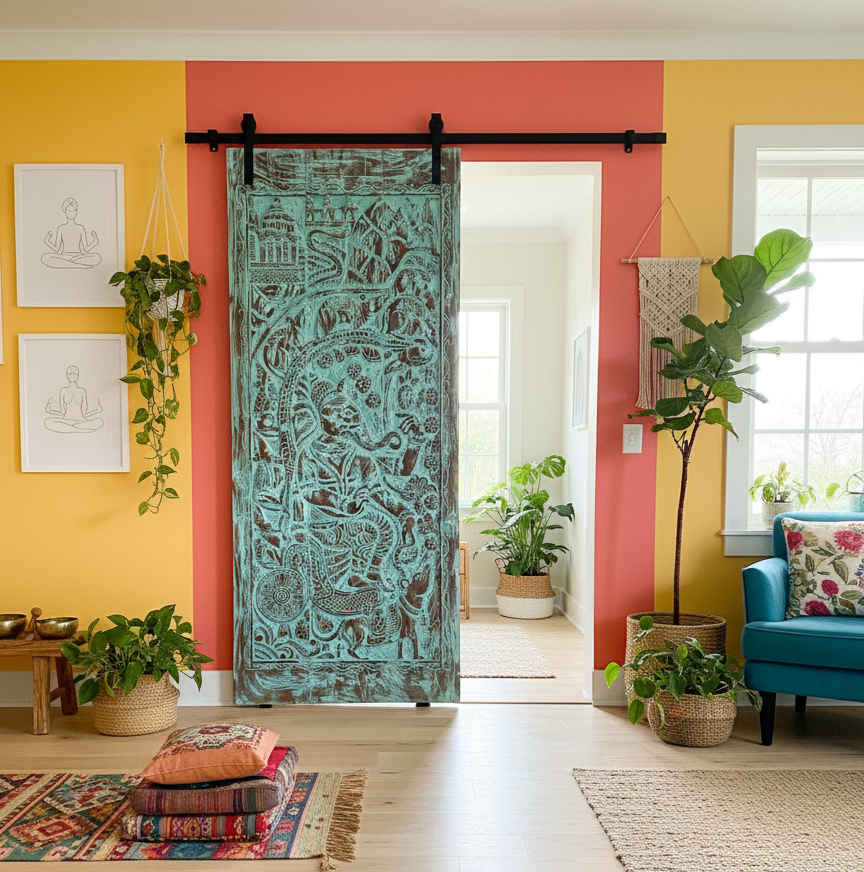 #antique door accent furniture ALTERNATIVE antique furniture Antique Haveli Door Bold Accent Furniture Earthing Furniture Farmhouse Coffee Table HOME AND KITCHEN hotel design Interior Design mindful design reclaimed-wood rustic decor rustic furniture satement decor Spiritual Sculpture Uncategorized vintage furniture vintage luxe wall decor Wall Sculpture