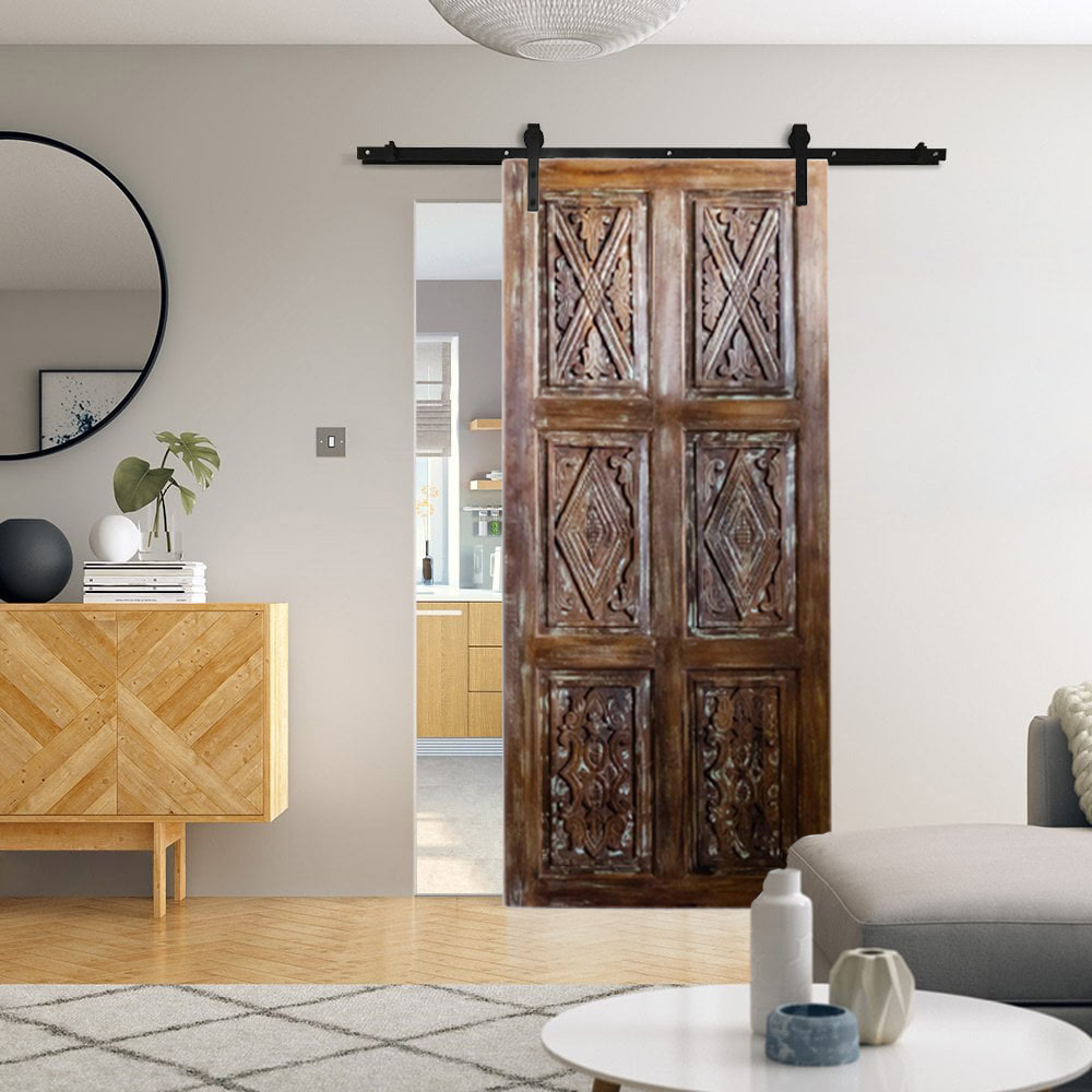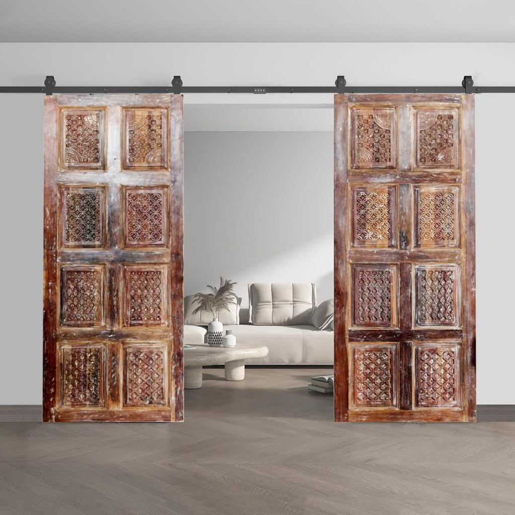 For barn doors, consider hardware that harmonizes with Spanish design elements, such as wrought iron. Opt for a flat black finish or clear-coated raw steel to perfectly complement the rich textures and timeless elegance of Spanish-style interiors.