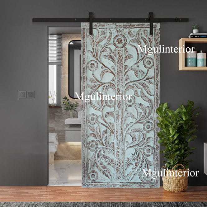Carved Door Jasmine Whitewashed Door Sliding Barn Door 80