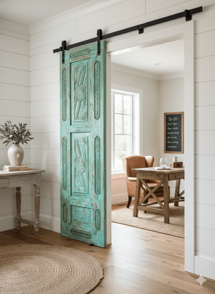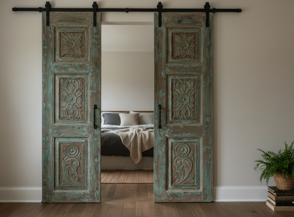 These barn doors enhance the beauty of any home interior, serving as an extension of one’s personality—constantly evolving and reflecting the bohemian wanderlust spirit that delves deep into the soul. They transport you to temples or the banks of the river Ganges, where the intricately carved walls narrate stories and guide you on a journey. Adorned with stunning wall carvings crafted by skilled artisans, these doors feature beautiful floral designs and desert patinas that add character and charm to your home.