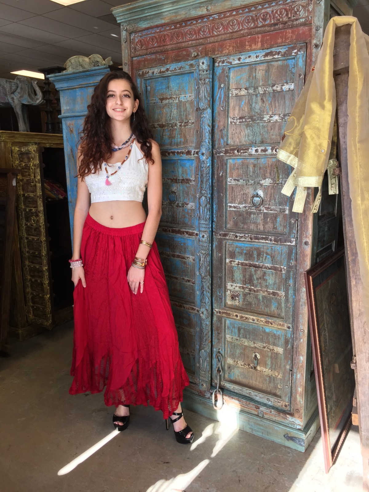 The colorful and mystical prints of the hi low sari skirts worn with skinny halters create a signature boho style. The stylish skirt shows off your legs and yet trails behind wantonly longing for the never ending expanses of sandy beaches which merge into the dazzling blue waters.The free spirit vibe goes hand in hand with the naughty and fun nightlife. Boho chic fashion never goes out of style.