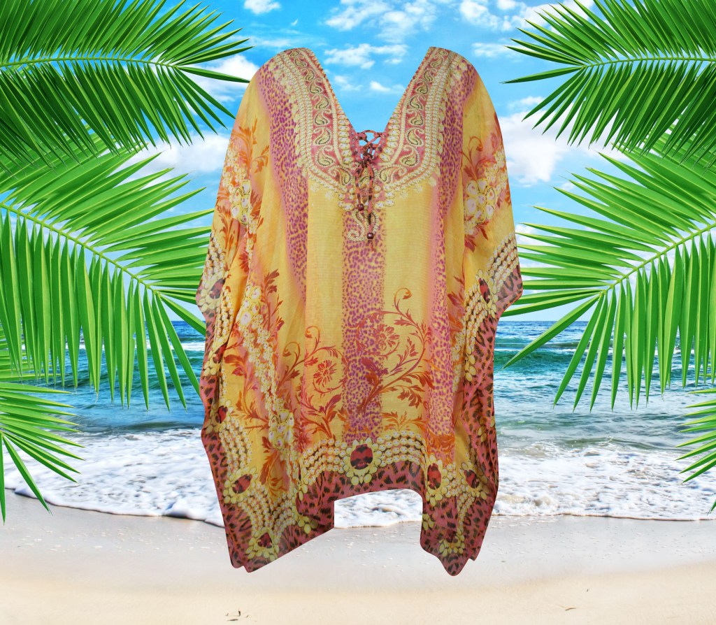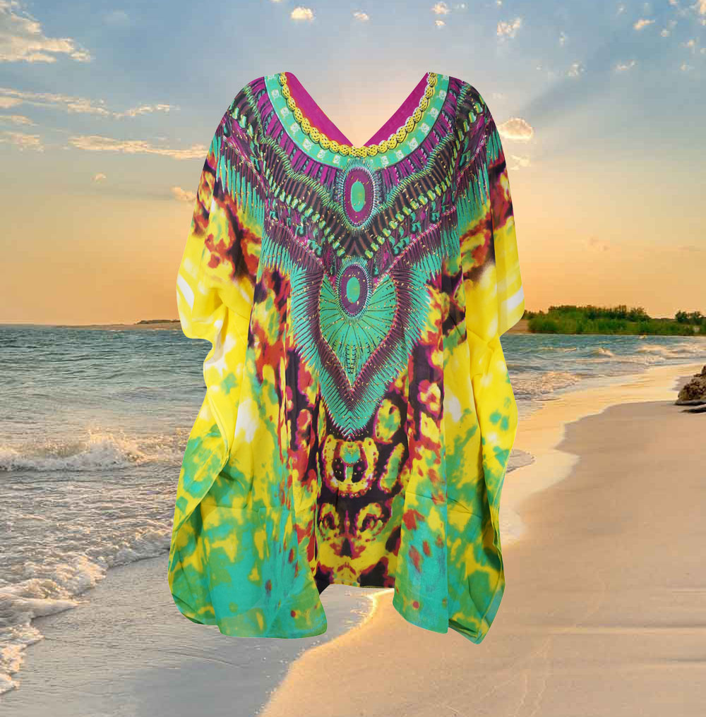 Kaftans are great for family outings, simple and casual chic, easy to take care and slip on styles, the versatility of kaftans make them comfortable loungers. Binge watch a TV series in the Kashmir embroidered cotton kaftan that gives comfort and style at the same time. Dressy enough the short kaftan dresses are great day dresses if you need to do errands on the weekend. Fun and different kaftans are a great choice for lounge wear, relaxing at the pool, patio barbeques or at a resort. Stylish and comfortable kaftans go hand and hand with boho chic fashion statement.