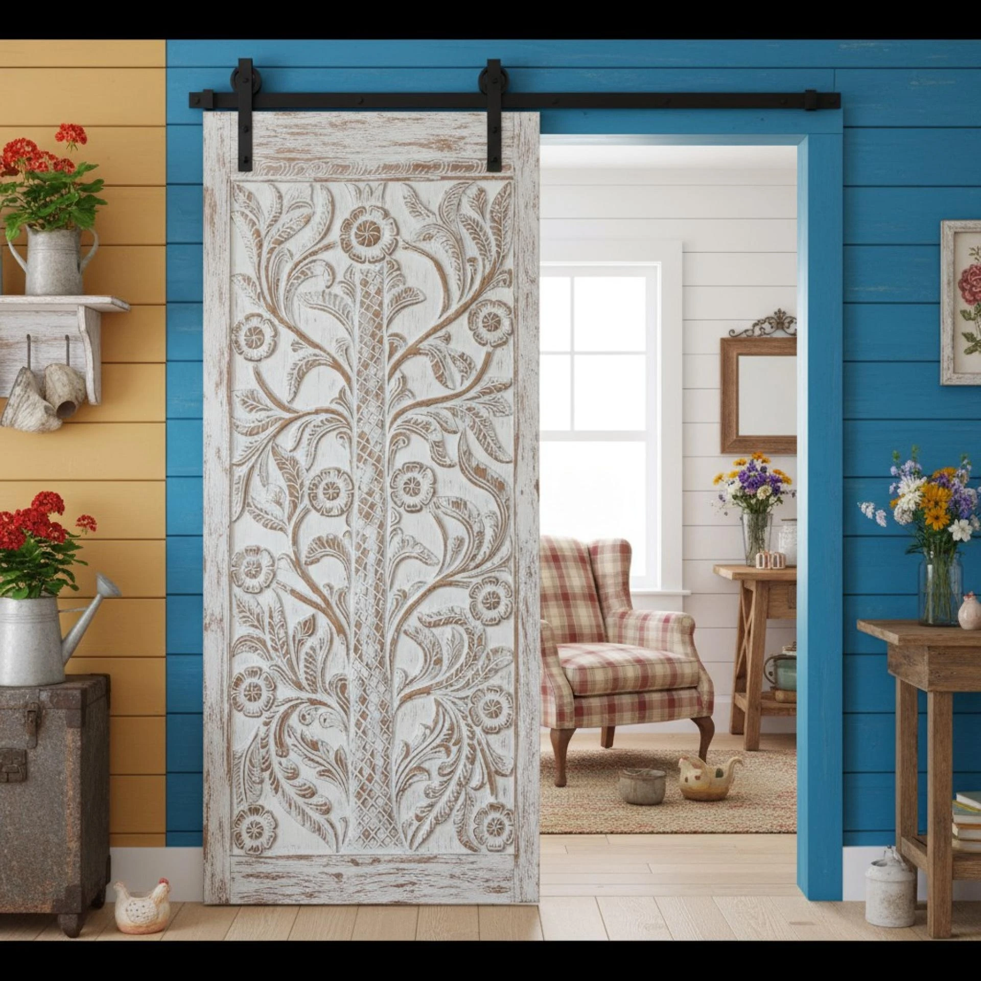 tep into a world of wellness design with the captivating allure of the Enchanted Forest Carved Door. Handcrafted with reclaimed woods this decorative door features intricate carvings of leaves, flowers, and intertwining branches, transforming your interior spaces into a symphony of wellness-inspired design. Each detail is expertly carved, creating a mesmerizing pattern that adds natures charm to any room. Beyond its functional purpose, this statement door serves as a piece of functional art, elevating the ambiance of your home with its handcrafted beauty. Shop At Etsy DoorsByMj