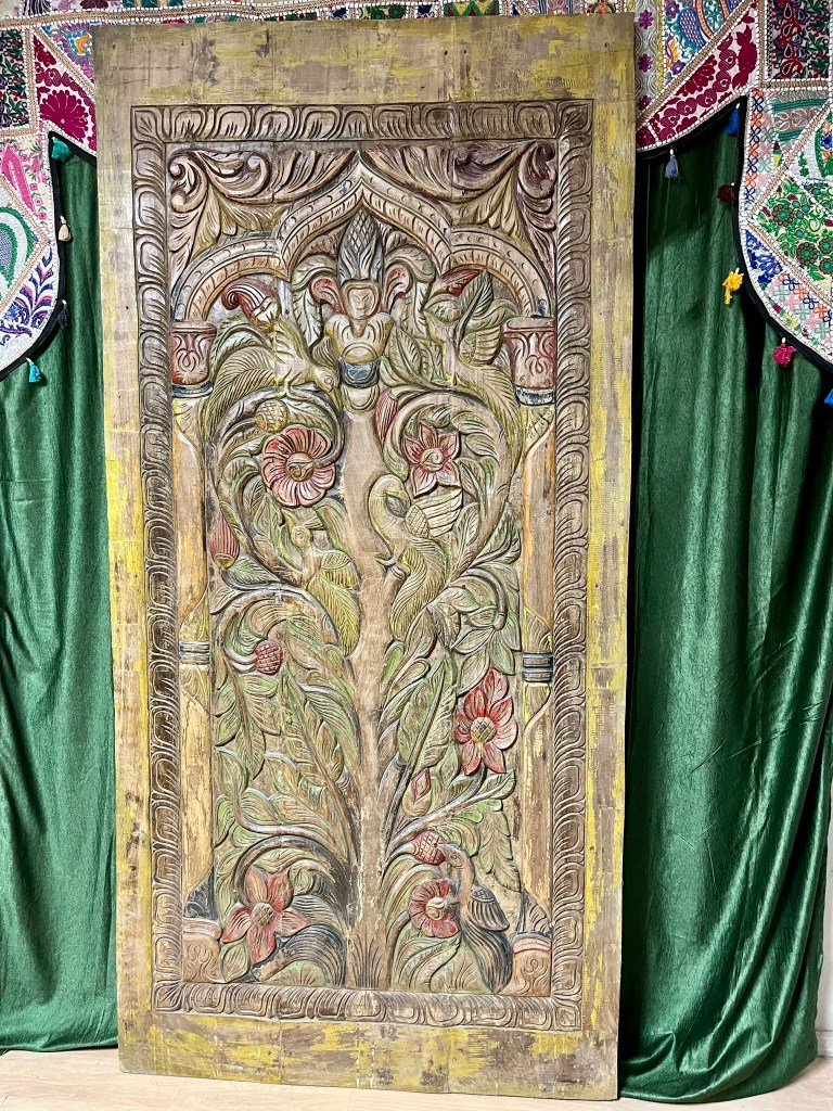 A Reclaimed Wood carved door with a Bodhi Tree of Life Carving can bring a natural and earthy elegance to a bedroom, enhancing the overall harmony of the space. Similarly, a Vintage Natural Wood Carved Sliding Barn Door can add warmth and character, seamlessly blending with other design elements to create a harmonious environment.