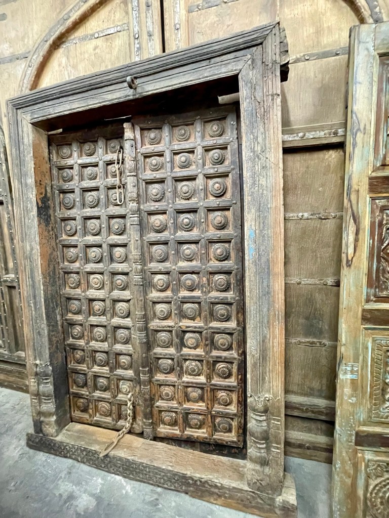 Incorporating vintage armoires with brass studs, arches, and antique doors into Spanish-style Arizona interiors is a beautiful way to evoke old-world charm while embracing the rustic farmhouse aesthetic.