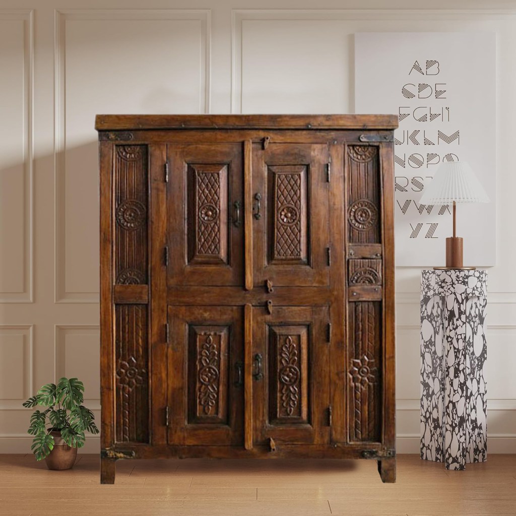 These carved armoires serve as striking focal points in living rooms, bedrooms, or dining areas, marrying functionality with timeless elegance. Their intricate details and weathered finishes seamlessly blend with the rustic elements of a farmhouse, such as distressed wood furniture, wrought iron accents, and natural textiles. This combination creates a warm and inviting atmosphere that feels both sophisticated and lived-in.