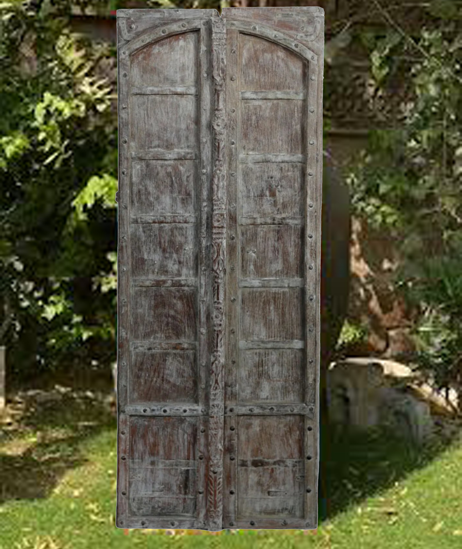 - Carved wooden doors create stunning entryways.